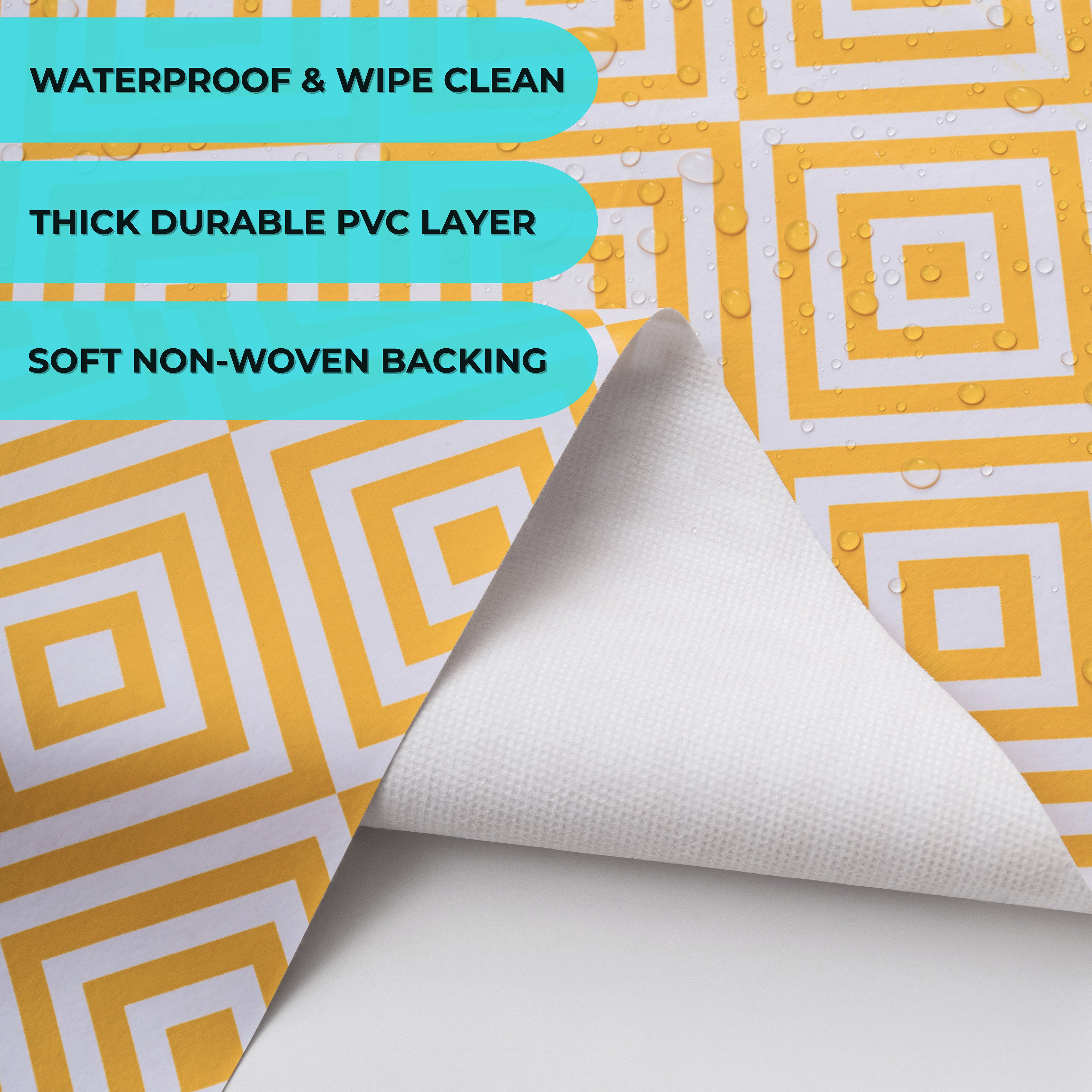 PROTECTS FROM SPILLAGES – A bright and uplifting way for you to protect your table from spillages, children's food, messy playtime, and general domestic use, while the soft non-woven backing keeps your table in prime condition.