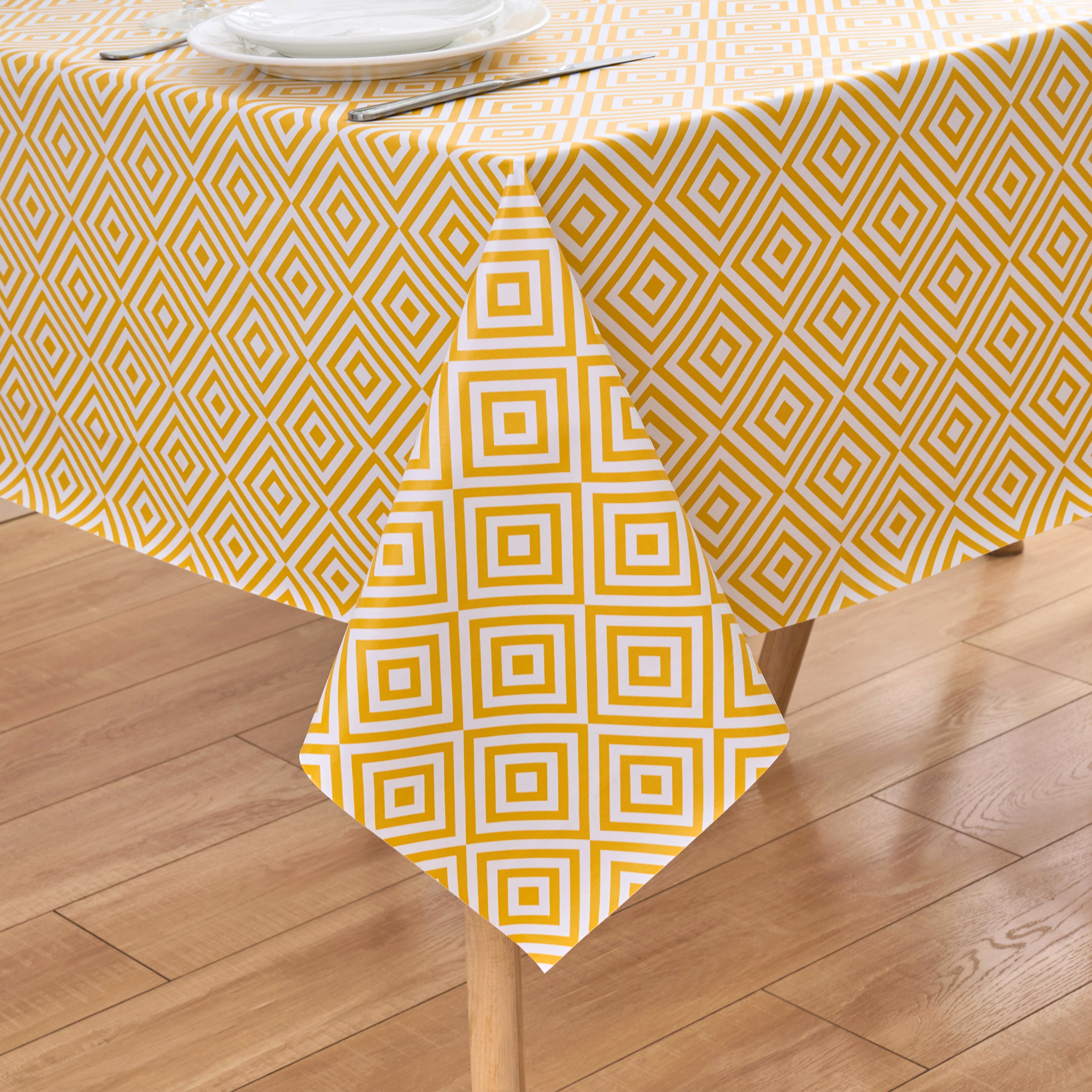 Dehaus Geo Diamond Wipe Clean PVC Table Cloth - Ochre Yellow